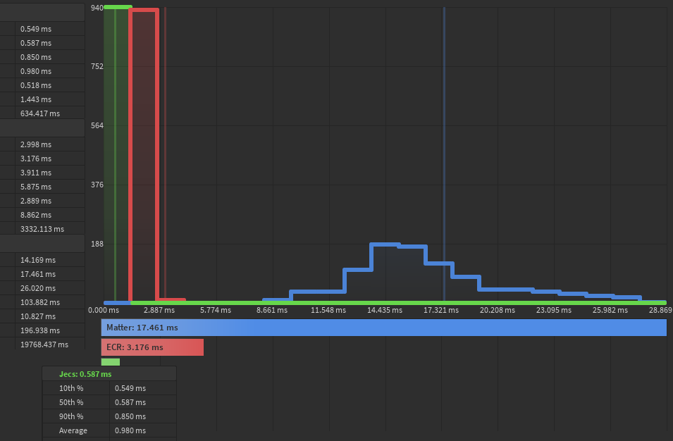 21,000 entities 125 archetypes 4 random components queried. Queries Can be found under /benches/query.lua